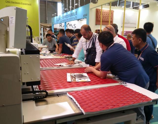 今天是家具展的第一天,富怡展位前十分熱鬧!富怡電腦繡花機、零等待縫紉機、三合一電腦裁床、立式噴墨切割機、繪圖儀等智能設備精彩亮相。