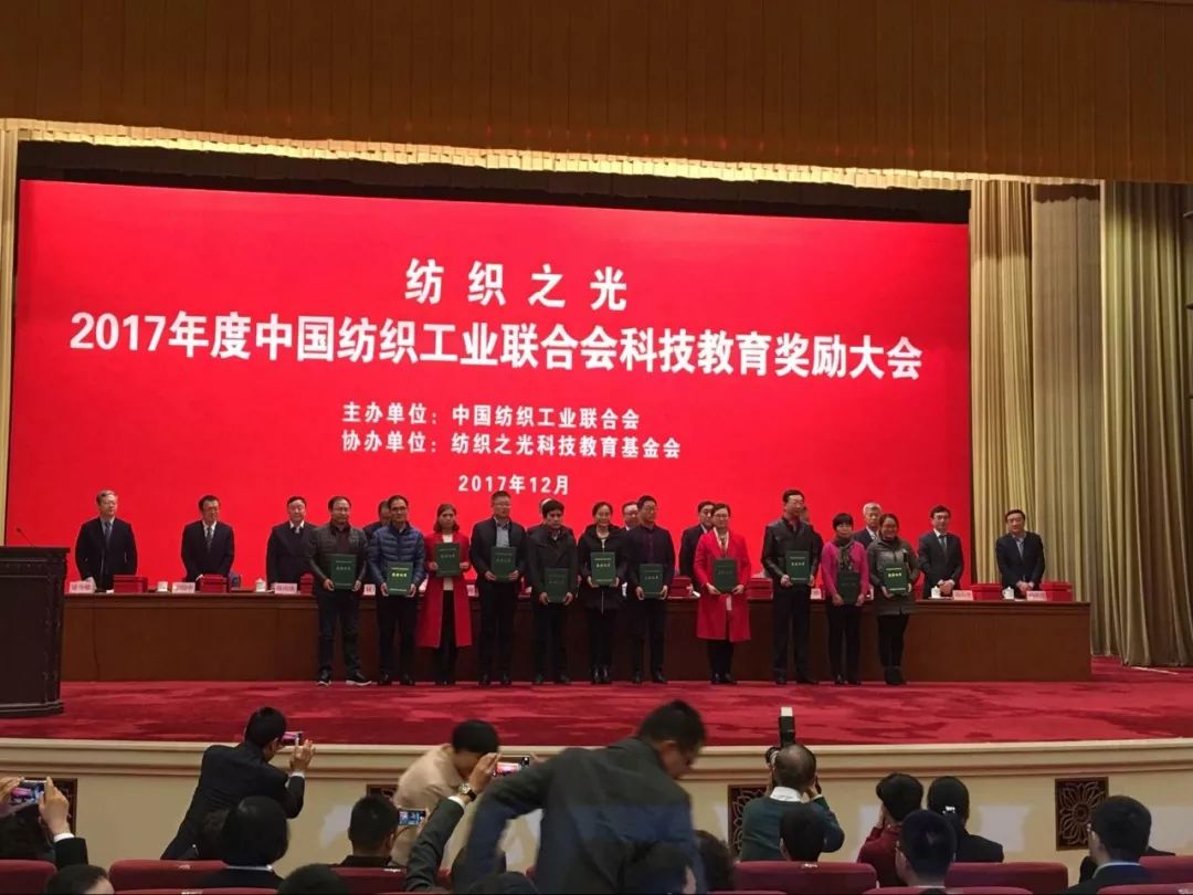 2017年12月18日,由中國(guó)紡織工業(yè)聯(lián)合會(huì)主辦,紡織之光科技教育基金會(huì)協(xié)辦的“紡織之光”2017年度中國(guó)紡織工業(yè)聯(lián)合會(huì)科技教育獎(jiǎng)勵(lì)大會(huì)在北京人民大會(huì)堂隆重召開(kāi)。
