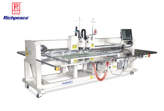 5、兩個(gè)縫紉機(jī)頭間距200mm,切換時(shí)間忽略不計(jì),最大程度提高工作效率。
