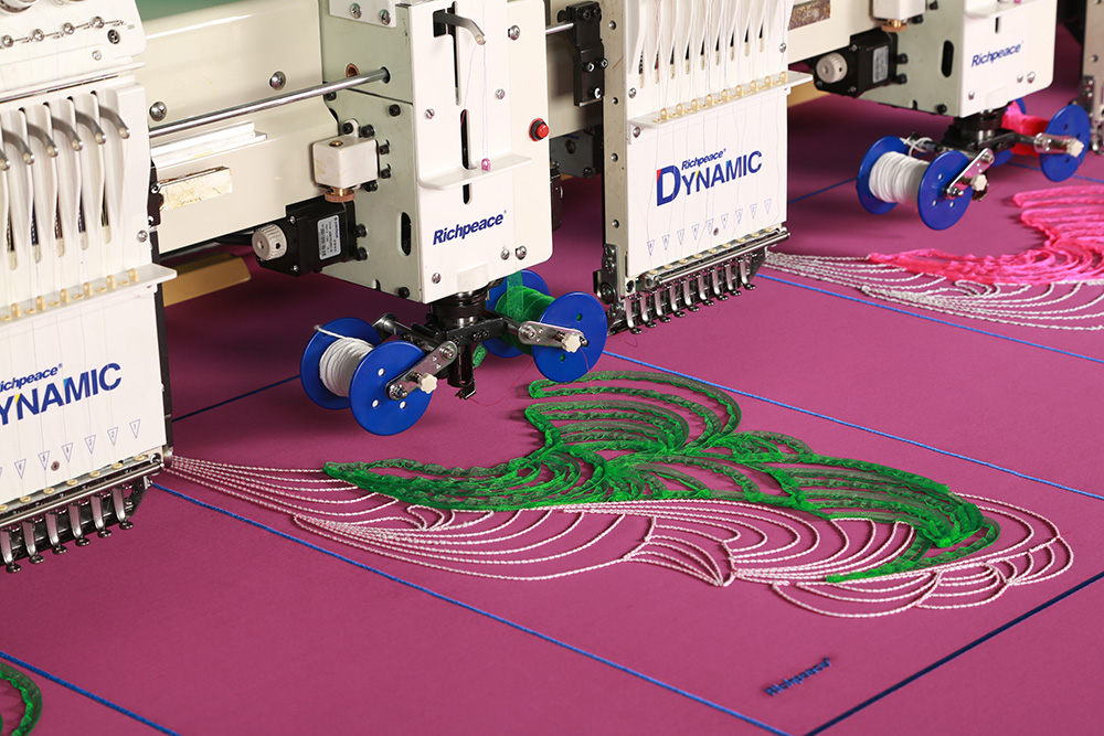 產品類型:純盤帶系列;平繡與盤帶混合系列;平繡、盤帶與金片三合一系列、可加獨立跟蹤繩繡、鎖式毛巾特種繡。