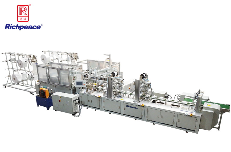1. 一體式設計 , 從原料進入 , 杯體成型,罩杯周邊焊接,罩杯周邊沖切,自動轉序,自動移印 , 自動超聲波焊頭帶, 自動超聲波上呼吸閥(選配),機械手抓取,自動傳輸等工藝自動完成,實現罩杯式口罩的全自動生產。